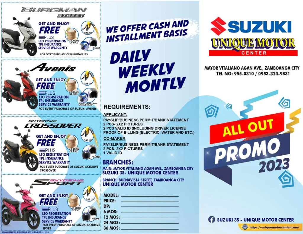 Whether you’re an aspiring rider or an experienced one looking to upgrade, this promo is your golden opportunity to explore Suzuki’s remarkable lineup while capitalizing on incredible discounts.
